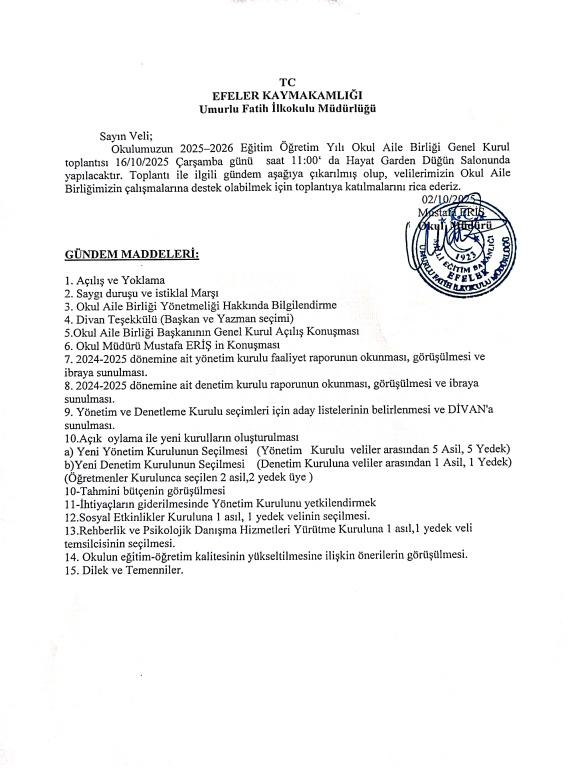 OKUL AİLE BİRLİĞİ GENEL KURULU TOPLANTISI